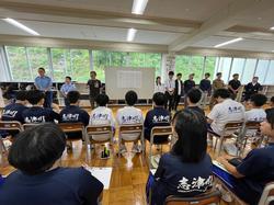 9月4日(木)の5、6時間目に、2年生の職場体験学習に向けて、各企業の方々に来校していただき、どんな思いを持って仕事をしているのか、職場体験学習ではどのような体験を予定しているのかなどを話していただきました。写真やスライド、広報動画などの様々な資料を用意していただき、生徒はどのブースでも興味津々で話を聞き、質問をしていました。