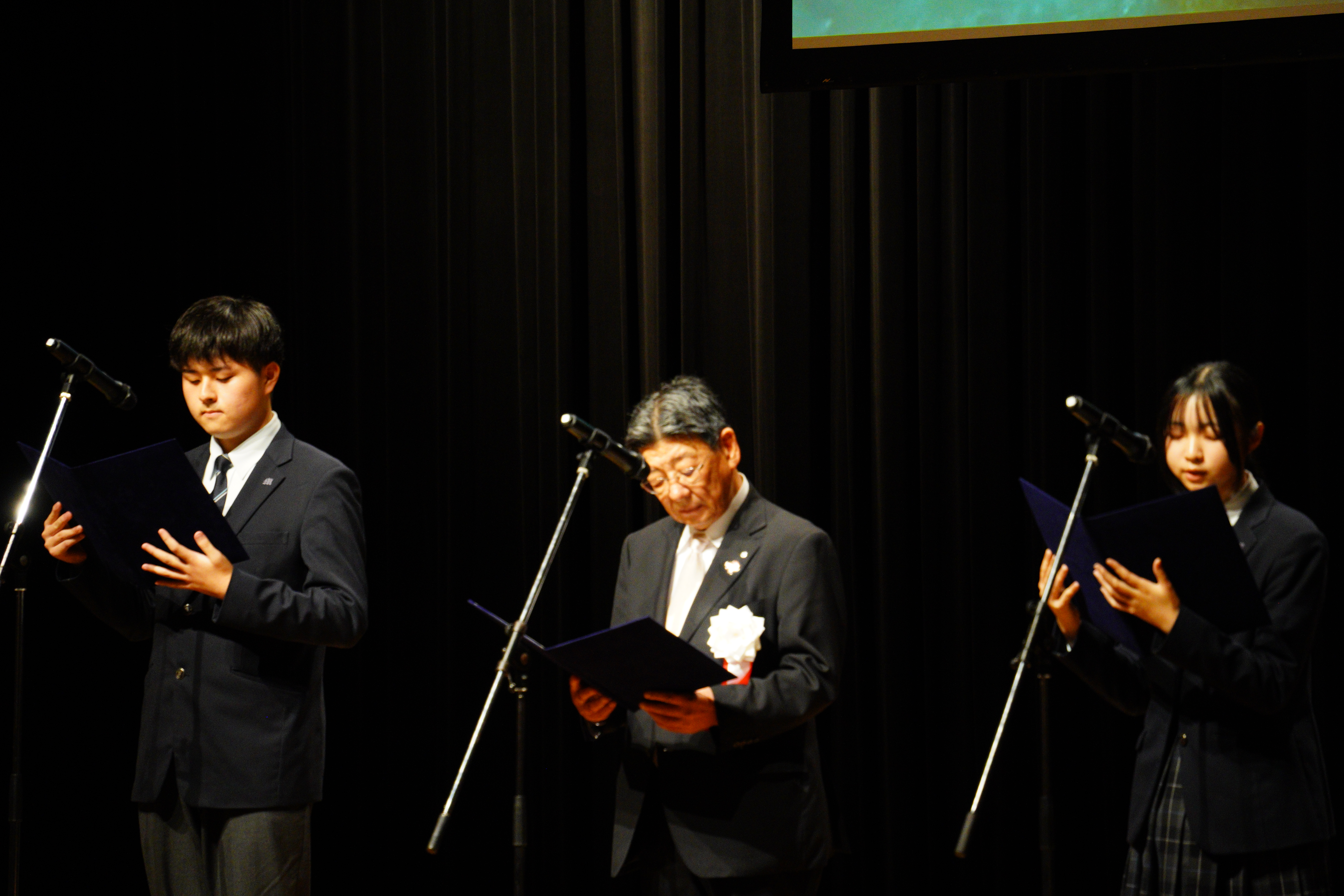 佐藤町長(中央)と南三陸高校生徒が宣言を行いました